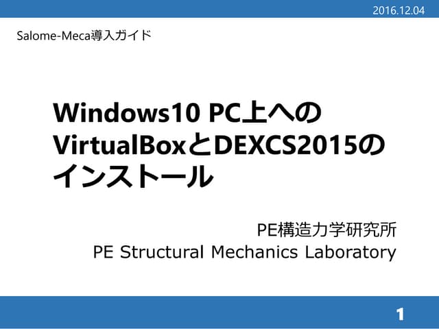 DEXCS2015(Salome_Meca2015.1を含む)のWindows 10 PC上への仮想マシンとしてのインストール - Download as a PPTX, PDF or view online for free